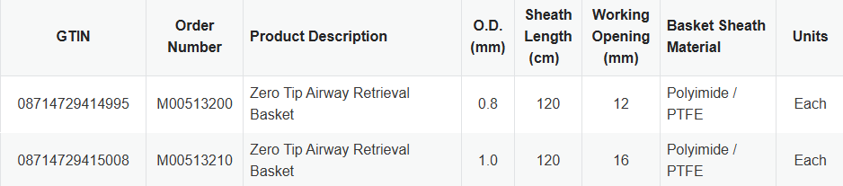در مدل Zero tip برخلاف سایر مدلهایی که در انتهای آنها زائده ای وجود دارد ، نوک بدون برجستگی قسمت انتهایی بسکت این امکان را فراهم می آورد که در هنگام به دام انداختن جسم خارجی به دیواره ی راههای هوایی بچسبد و در نتیجه به دام انداختن جسم خارجی به مراتب با سهولت و سرعت بیشتر و در عین حال بدون آسیب به بافت انجام میشود.
